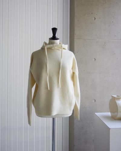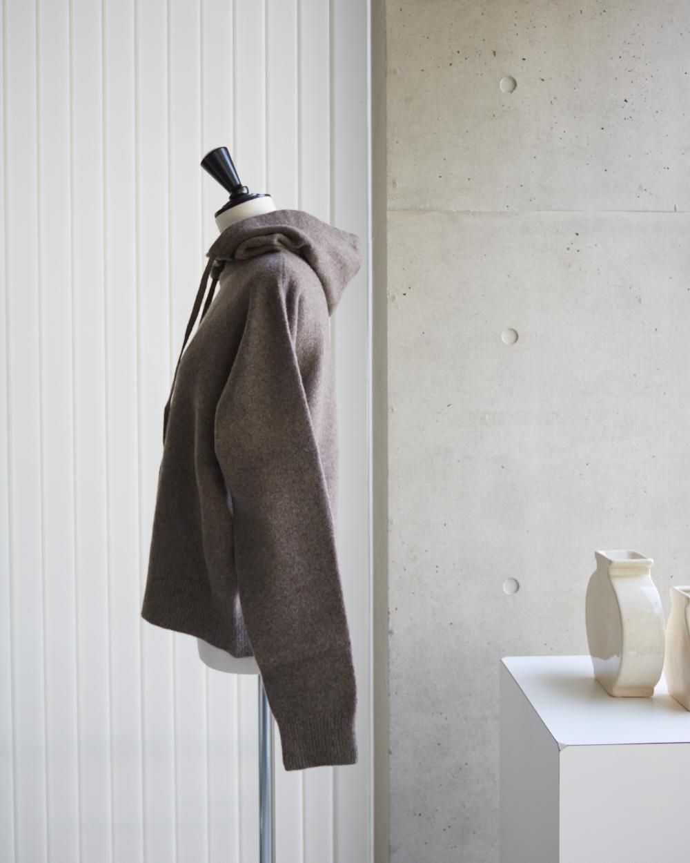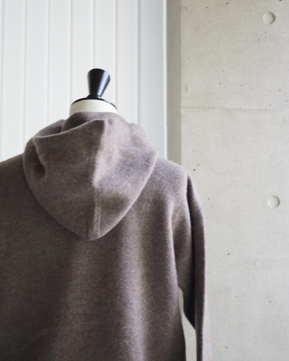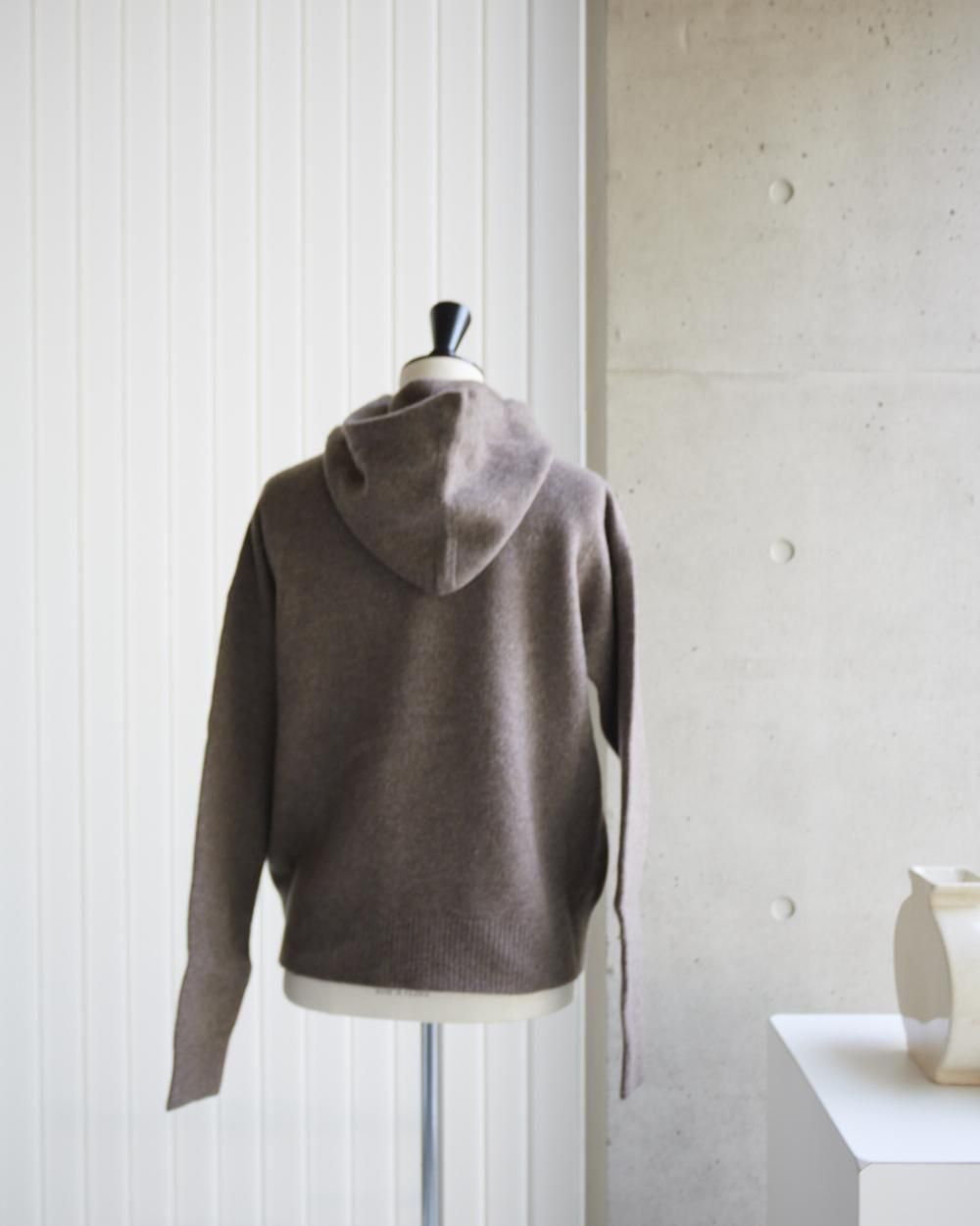 衿高はそのままに軽さと温かさが魅力のフーディが完成しました