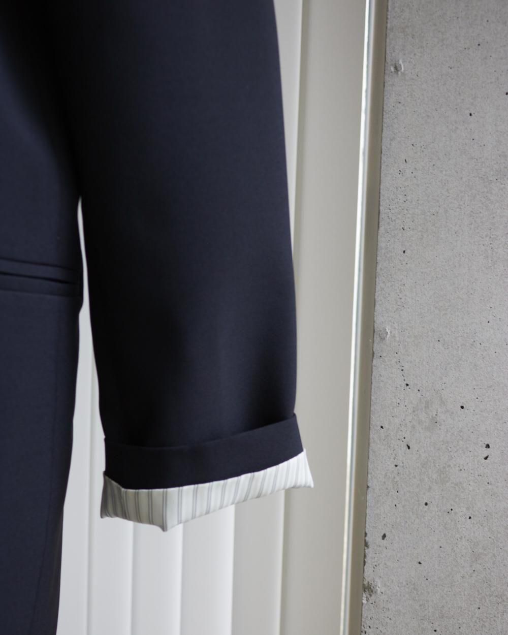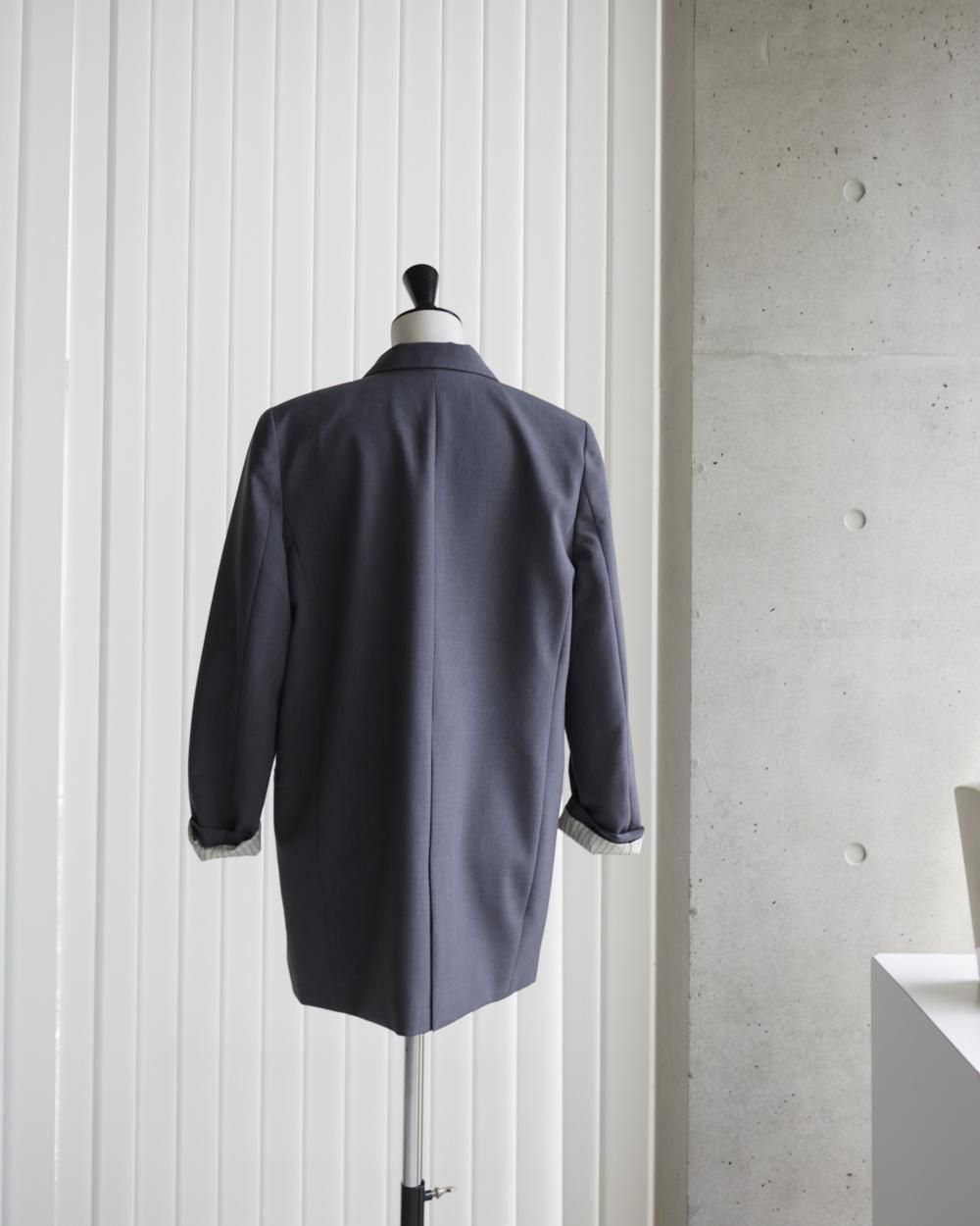 動きやすい形と、ボトムを選ばない点はオールマイティといえる一枚。細く長く見えるジャケットは