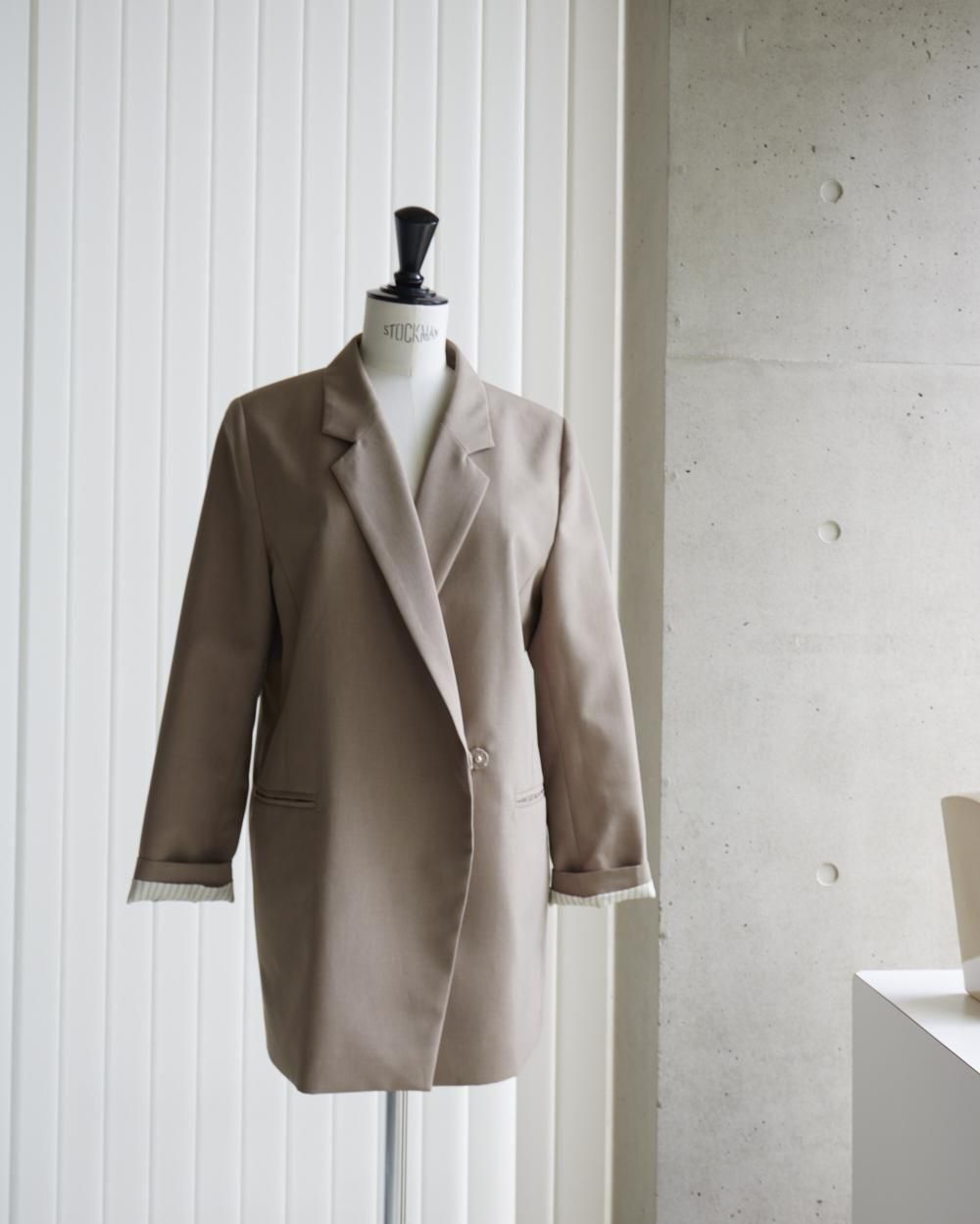 ■ Tシャツブラウスや、ワイドプリーツスカートと同じ生地を使ったシンプルなジャケットです、