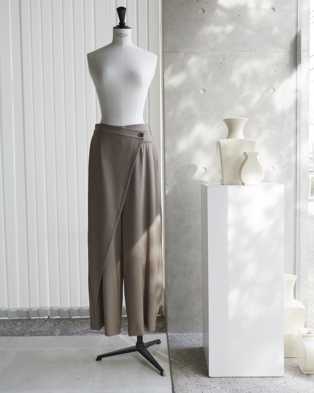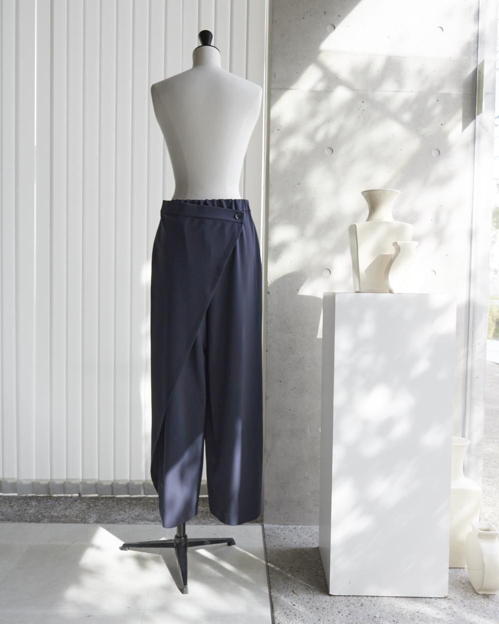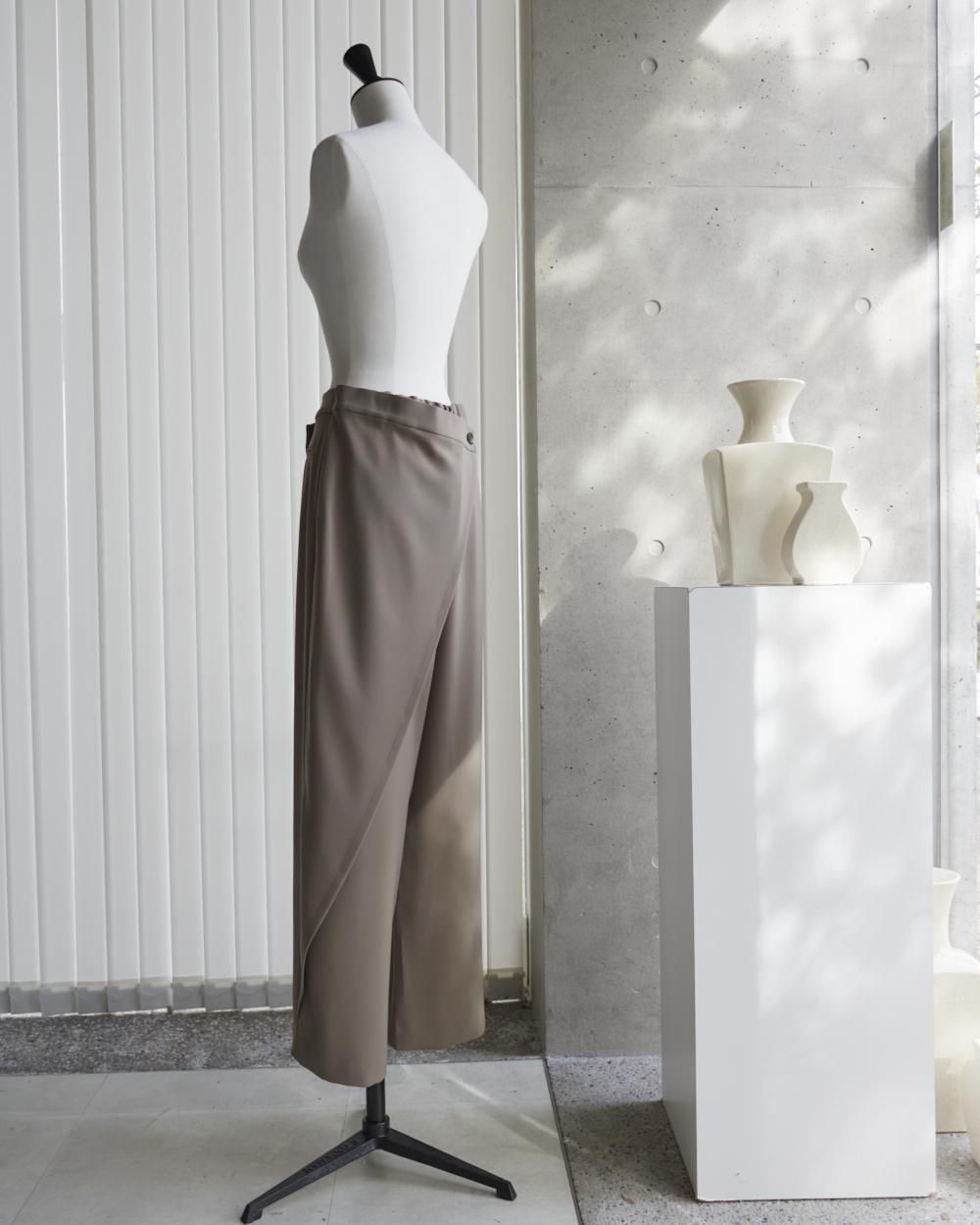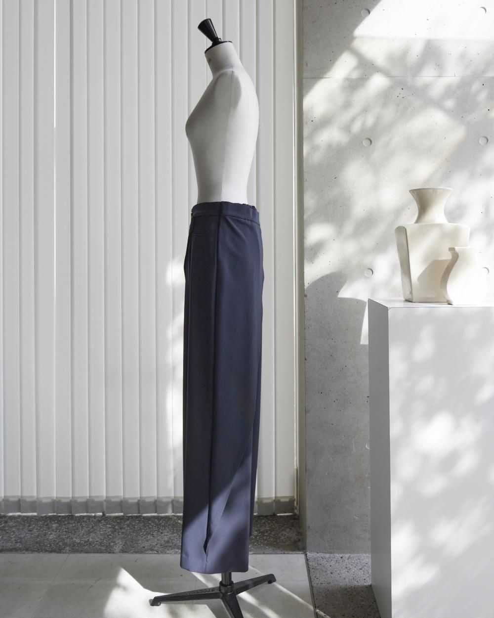 しわになりにくい生地を用いたパンツは一年通して着用可能、