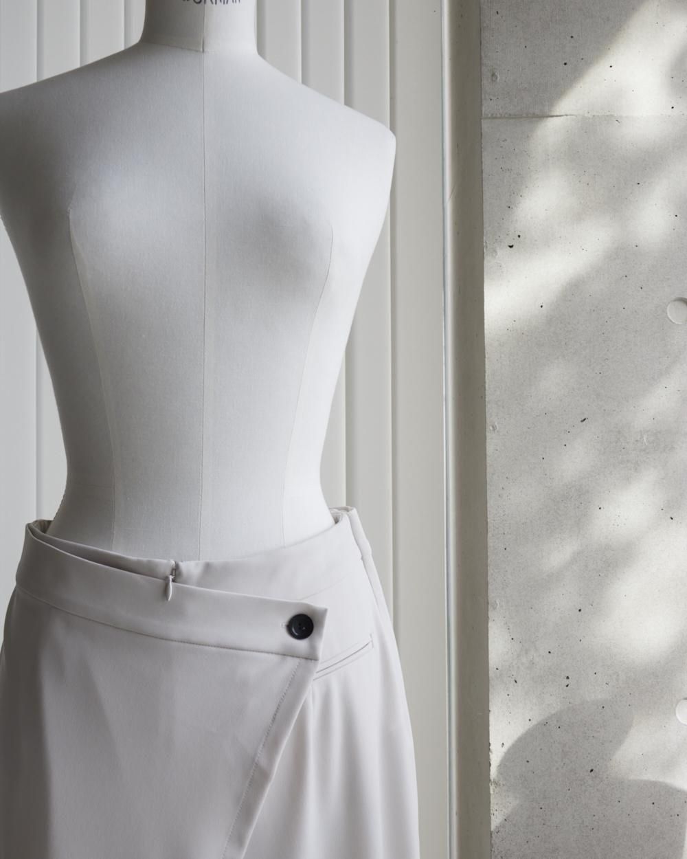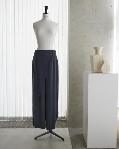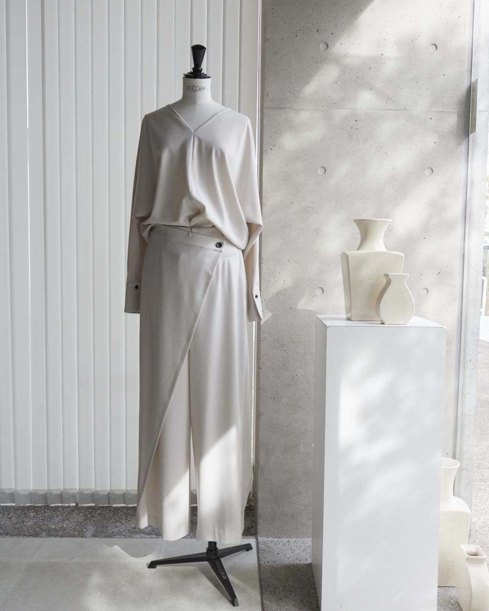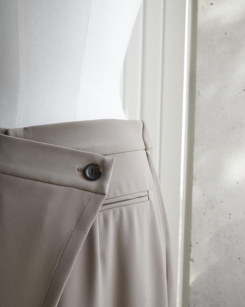 しわになりにくい生地を用いたパンツは一年通して着用可能、